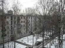 ![]() Пятиэтажная четырёхподъездная панельная хрущёвка серии I-464А в Москве | |