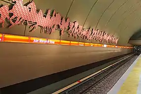 Вестибюль украшен произведениями: Толпы, Сцена Бога и урожая; Andrés Waissan. На платформе и туннеле изображение: стада лошадей; Julio Lavallén[4][5].