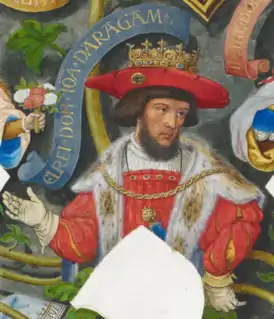 - Фердинанд (10 марта 1452 — 23 января 1516), король Арагона (1479—1516), Сицилии (1468—1516), Неаполя (1504—1516), супруг и соправитель королевы Изабеллы Кастильской;
