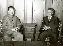Во второй половине августа 1978 года Хуа совершил свою первую зарубежную поездку — посетил Румынию, Югославию и Иран. Это был третий в истории КНР визит за рубеж китайского лидера, после двух поездок Мао в СССР в 1949—1950 и 1957 годах[4].