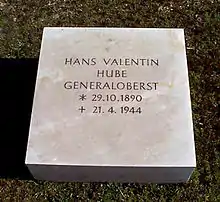 Ганс-Валентин Ху́бе (нем. Hans-Valentin Hube; 29 октября 1890, Наумбург — 21 апреля 1944, Айнринг) — немецкий военачальник, участник Первой и Второй мировых войн, генерал-полковник (1944). Кавалер Рыцарского креста с Дубовыми листьями, Мечами и Бриллиантами.[1]