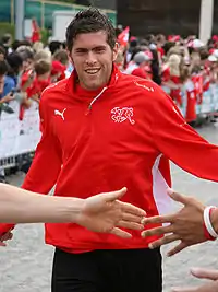 ![]() Хуггель с болельщиками во время чемпионата Европы 2008 | ||||||||||||||||||||||||||||