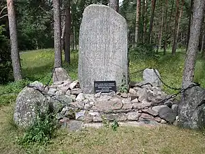 - памятный камень Паруникиви (Parunikivi, с эстонского — «Баронский камень»), посвящён барону Отто Фридриху Фромхольду фон Штакельбергу (Otto Friedrich Fromhold von Stackelberg, 1823—1887) его вдовой и сыном. Представляет из себя большой ледниковый валун, на котором выбит текст: Dein Bleibenden Andenken des / Baron Otto Friedrich Fromhold / von Stackelberg / geb.5/17 August 1823 gest. 15/27 August 1887 / als des lezten Privatbesitzen der / Insel Vorms aus herzinnger / Liebe gewidmet von seiner Wittwe / und seinem Sohne. При инспектировании 08.04.2016 находился в хорошем состоянии[28].