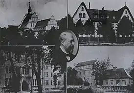 ![]() Здание гимназии и её первый директор открытке | |