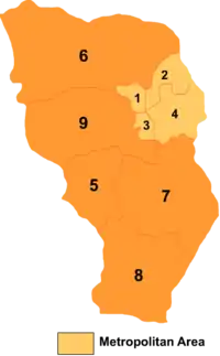 | 6 | Уезд Учуань | 武川县 | Wǔchuān xiàn | 170 000 | 4885 | 35 | |