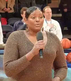 ![]() Ким исполняет гимн в Мэдисон-сквер-гарден на турнире Мэгги Диксон Классик (9 декабря 2012) | |||||||