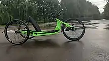 Хэндбайк с низкой посадкой используется в гонках. Он минимизирует сопротивление воздуха и максимизирует боковое ускорение, что позволяет проходить гоночные повороты и избегать аварий с переворотом велосипеда.