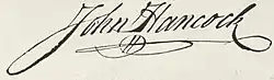 Джон Хэ́нкок (англ. John Hancock; 23 января 1737 — 8 октября 1793) — американский государственный деятель, сторонник Американской революции. Хэнкок занимал пост президента Второго Континентального Конгресса, стал первым губернатором штата Массачусетс. В американской культуре получил большую известность за особо крупную подпись под Декларацией независимости США.
