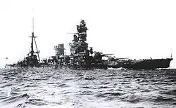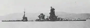![]() Линкор-авианосец «Хюга» после перестройки в 1943 г. |