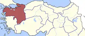 Эялет состоял из 8 санджаков[3]: Хюдавендигар[4], Афьон-Карахисар, Кютахья, Биледжик, Бига, Балыкесир, Эрдек, Айвалык.