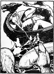Тор, Хюмир и Ёрмунганд. Артур Рэкхэм, рисунок 1901 года