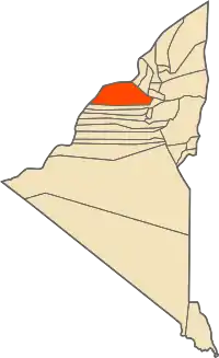 Город находится на севере центральной части вилайета, на территории одного из оазисов северо-западной Сахары, на расстоянии приблизительно 971 километра к юго-юго-западу (SSW) от столицы страны Алжира. Абсолютная высота — 252 метра над уровнем моря[1].