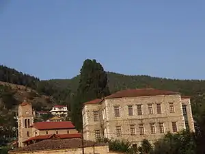 - Расположен на месте старого монашеского скита, на скале подобной Метеора, в 2 часах хода от Царицани. Был разрушен турками в сентябре 1823 года[53].