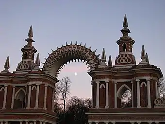 [Архитектор] несомненно исходил из элементов так называемого московского барокко, а не из чужеземного, уже умершего готического стиля. Обращаясь к русской архитектуре XVII века, Баженов не копировал её, он возрождал её в претворённом виде, обогащая новыми приёмами и мотивами.