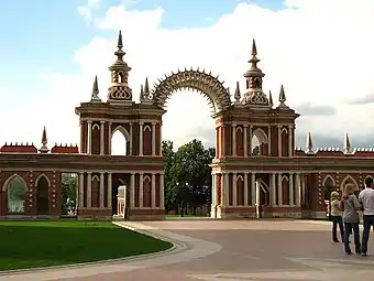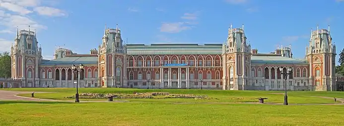 Царицыно является памятником так называемой «русской готики» (псевдоготики); над созданием императорской резиденции в течение 20 лет работали последовательно два наиболее известных архитектора своей эпохи — Василий Баженов и Матвей Казаков[3]. Царицыно — самая крупная в Европе псевдоготическая постройка XVIII века и единственный дворцовый комплекс, разработанный в этом стиле[3]. Особенности дворцово-паркового ансамбля во многом определили новое направление в русском зодчестве: в разных концах бывшей Российской империи существует немало сооружений конца XVIII и начала XIX века, которые созданы под влиянием Царицына[4].