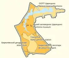 Это исторически сложившаяся, наиболее известная и благоустроенная часть особо охраняемой природной территории (ООПТ) «Царицыно», расположенной между московскими районами Царицыно, Бирюлёво Восточное, Орехово-Борисово Южное и Орехово-Борисово Северное.