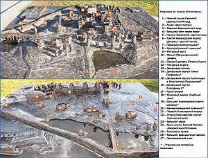 | Большой дворец • Хлебный дом • Оперный дом • Малый дворец • Кавалерские корпуса • Храм иконы Божией Матери «Живоносный Источник» | |