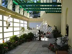 Во внутреннем садике находятся ещё два фонтана — «Орел и змея» (ск. Маркизини) и маленький фонтанчик-маскарон. Налево от садика, перед большими окнами гостиной расположена терраса (9), обрамленная ажурным чугунным парапетом с вазами. На террасе после реставрации установлена статуя «Спящая Венера» работы скульптора Ч. Баруцци (1847 г.), ранее находившаяся у Розового павильона.