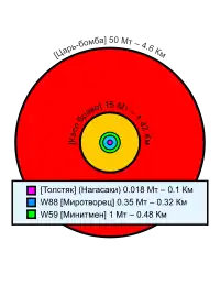 В то же время первый термоядерный боеприпас и первая МБР были созданы именно в СССР. - В различных источниках вес АН602 указывается от 24 до 27 т. Здесь приведены данные из: Веселов, 2006