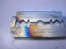 Для нержавеющих сталей изменение цвета при нагреве на воздухе наблюдается: светло-соломенный (300 °C), соломенный (400 °C), красно-коричневый (500 °C), фиолетово-синий (600 °C), синий (700 °C). Нередко цвета побежалости на нержавеющей стали путают с радужной окраской, которая может возникать при температурах не выше 100 °C (кипячение воды). Радужная окраска не связана с перегревом стали.