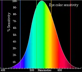 Длинноволновые излучения вызывают ощущение красного и оранжевого цветов, средневолновые — жёлтого и зелёного, коротковолновые — голубого, синего и фиолетового. В спектре — семь основных цветов: красный, оранжевый, жёлтый, зелёный, голубой, синий и фиолетовый. Различают также множество промежуточных оттенков. Белый, серый и чёрный цвета называются ахроматическими (лишены цветности); лишенными цвета являются также «чисто» прозрачные среды, как-то: стекло, вода, газ и т. п. (химически и физически чистые)вода глубоких залеганий (морская) сохраняет относительную прозрачность и теряет бесцветность — приобретает цвет морской волны (светло-синяя, темно-голубая лазурь) из-за того, что сама становится светопроводящей и светопреломляющей средой.