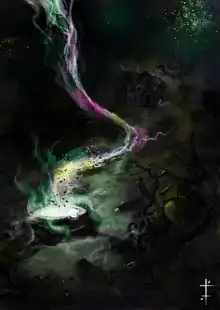 Оригинальный текст (англ.)[показатьскрыть]There upon the floor was a dark and putrid mass, seething with corruption and hideous rottenness, neither liquid nor solid, but melting and changing before our eyes, and bubbling with unctuous bubbles like boiling pitch. And out of the midst of it shone two burning points like eyes, and I saw a writhing and stirring as of limbs, and something moved and lifted up what might have been an arm.