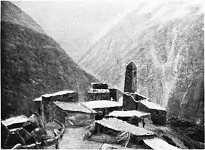 Ближайшие развалины бывших аулов: на северо-востоке — бывшие аулы Шундили, Басхой и Хорци-Пада, на северо-западе — бывшие аулы Баст-Хайхи и Камалхи, на юго-востоке — бывший аул Хохичу, на юго-западе — бывший аул Пуога[1].