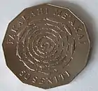 В Гонконге и Макао одна сотая базовой валюты обозначается иероглифом 仙, который читается как «син» (англ. sin) — заимствование слова «цент» из английского.