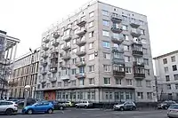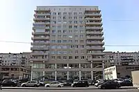 7) Улица Лени Голикова, 31. Жилой дом с помещениями общественного назначения. Построен в 1968 году по проекту типовой серии 1-528КП-41. В этом здании библиотека имени В. В. Маяковского размещалась в 1968—1976 годах в период ремонта помещений на наб. р. Фонтанки, 44. |