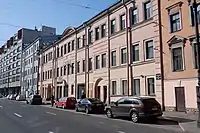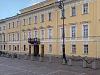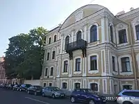 6) Набережная реки Фонтанки, 44. Здание возведено в 1734 году и позднее многократно перестраивалось с изменением габаритов, внешнего и внутреннего убранства. С 1940 года здание занимает Центральная городская библиотека. Внешний вид главного фасада (архитектор А. М. Горностаев) возвращен по состоянию на вторую половину XIX века в 1995 году, в 2021 году по завершении реконструкции здания воссозданы детали декора. |