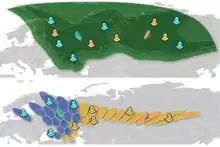 В традиционных сетях спутниковой связи, использующих геостационарные спутники с непрерывными зонами покрытия шириной в сотни и тысячи километров, ЦЗС может находиться в любой точке такой зоны и обслуживает находящиеся в этой же зоне абонентские станции. Географический размер сети, управляемой одной ЦЗС, может быть любым в пределах зоны покрытия[21], а количество таких сетей в одной зоне ограничено только их суммарной пропускной способностью и частотно-энергетическим ресурсом спутника[22].