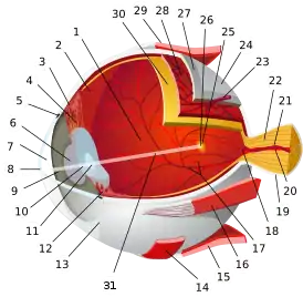 ![]() Диаграмма глаза; вена сетчатки под номером 21. | |