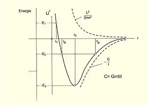 Так при минимальной энергии движущегося тела тело движется по круговой орбите с радиусом