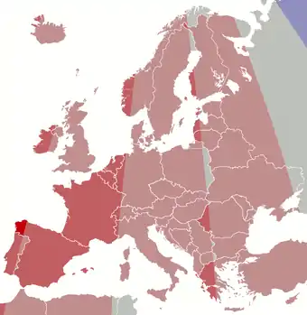 | синий | Западноевропейское время (WET) (UTC+0) Западноевропейское летнее время (WEST, BST) (UTC+1) |