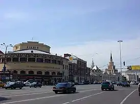 Архитектор А. В. Щусев и инженер Г. Г. Карлсен. Здание выдержано в эпохе «нарышкинского» барокко, о чём свидетельствуют белокаменные «гребешки», которые украшали церкви в XVII веке. Зрительный зал граничит с площадью. Карлсен украсил здание полукольцом из железобетона[3].