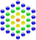 Центрированные многоугольные числа — это класс плоских -угольных фигурных чисел (), получаемый следующим геометрическим построением. Сначала на плоскости фиксируется некоторая центральная точка. Затем вокруг неё строится правильный -угольник с точками вершин, каждая сторона содержит две точки (см. рисунок). Далее снаружи строятся новые слои -угольников, причём каждая их сторона на новом слое содержит на одну точку больше, чем в предыдущем слое, то есть начиная со второго слоя каждый следующий слой содержит на больше точек, чем предыдущий. Общее число точек внутри каждого слоя и принимается в качестве центрированного многоугольного числа (точка в центре считается начальным слоем)[1].