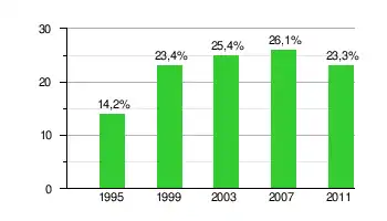 На парламентских выборах 2011 года партия получила 23,3 % голосов и 26 мест.