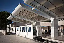 Центр снабжён семиэтажным подземным гаражом для посетителей, рассчитанным на 1200 парковочных мест. На крыше гаража расположен сад скульптур[13]. Автоматический фуникулёр из трёх вагонов доставляет посетителей от гаража до вершины холма.