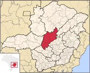 Центр штата Минас-Жерайс на карте.