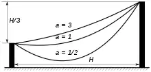 Все цепные линии подобны одна другой, изменение параметра эквивалентно равномерному растяжению или сжатию графика функции вдоль оси . Переменная графика отсчитывается от самой низкой точки на оси ординат цепной линии.
