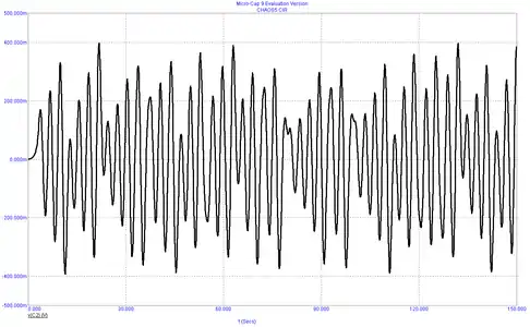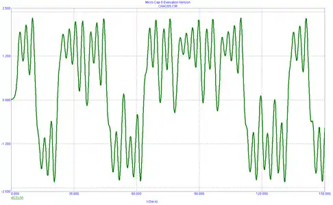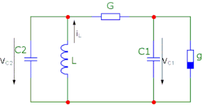 Термин «Осциллятор Чуа» используется для рассмотрения цепи Чуа с учётом активного сопротивления катушки индуктивности L. Данная схема имеет ещё большее число разнообразных режимов и может быть реализована практически (рисунок 7).