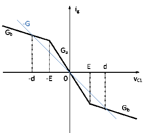 Эта нелинейная функция представлена графически на рисунке 2: крутизна внутреннего и внешнего участков есть Ga и Gb соответственно; при этом точки ±Е соответствуют изломам на графике.