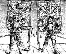 Несколько столетий спустя меч духовный получает материализованное воплощение. Это оружие Папский престол в лице Епископа Римского вручает европейским правителям, их наследникам или полководцам[11] «в знак признания их вклада в защиту христианского мира», зачастую, как выражение одобрения совершённого или планируемого присоединения земель, население которых также попадало под влияние Католической церкви. Дары эти получили название Благословлённые меч и шляпа (лат. ensis benedictus, pileus benedictus). При этом на каждом экземпляре меча было всегда инкрустировано имя Папы, благословившего меч, но никогда имя одариваемого: по мнению церкви, истинным защитником веры был сам понтифик, в то время как светский правитель являлся лишь его вооружённой рукой[12].