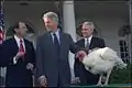 Президент Билл Клинтон на 11-й ежегодной церемонии помилования индейки на День благодарения, 1999