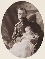 Как отмечается в многотомной и роскошно оформленной «Истории лейб-гвардии Финляндского полка. 1806–1906»[5], в тот день Финляндский полк выстроился в манеже, имея на своём правом фланге Пажеский корпус, а на левом — Волынский полк вместе с ветеранами из Чесменской богадельни. Пока главнокомандующий войсками гвардии и Петербургского военного округа великий князь Николай Николаевич инспектировал полк, императрица Александра Фёдоровна с цесаревичем Алексеем проследовала в царскую ложу, а Николай II вышел на манеж вместе с великими князьями Михаилом Александровичем и Дмитрием Павловичем. После рапорта командира полка генерал-майора Самгина и обхода императором рядов частей, состоялся молебен с «возглашением Царского многолетия, вечной памяти православным воинам и многолетием Русскому воинству». Затем «Государь Император изволил взять на руки Августейшего Своего Сына, Шефа Финляндцев, которого и пронес перед фронтом участвующих в параде частей, предшествуемый протопресвитером, окроплявшим святою водою знамена и войска. Торжественно было это шествие: на руках царя-отца наследник цесаревич впервые следовал вдоль рядов Своего Л.-Гв. Финляндского полка, все члены которого с сердечным умилением и восторгом взирали на Своего Августейшего Шефа, столь давно жданного перед рядами полка. В белой одежде, опушенной горностаем — обычным украшением царской мантии, как светлый луч, малютка наследник ласково и спокойно взирал на Свой полк, восторженно встреченный Своими Финляндцами»[6]. Отдав наследника императрице, Николай II принял церемониальный парад, после чего поблагодарил Пажеский корпус и проследовал к Финляндскому полку[6], где «осчастливил» собравшихся словами о том, что «верою и правдою почти сто лет служит лейб-гвардии Финляндский полк своим Царям и Родине. […] Сегодня вы видели своего Шефа. Уверен, что будущие финляндцы будут так же верно служить Ему, как вы служили и служите теперь Мне»[7]. Затем император проследовал в ложу, где во второй раз взял на руки цесаревича и подняв его над балюстрадой, сказал: «Вот ваш Шеф!», что вызвало «неописуемый восторг Финляндцев», выражавшийся в криках «ура» и продолжавшийся до отбытия царской семьи из манежа[6].