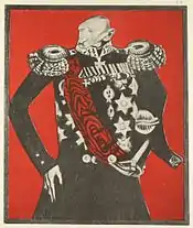 Портрет Александра I в полный рост Кустодиев исполнил легко, воспользовавшись известным портретом работы Джорджа Доу для галереи героев войны 1812 года и лишь слегка изменив детали. При написании такого же по размерам портрета Николая II он следовал романтической манере Доу, пользуясь также фотографиями императора и живыми впечатлениями от наблюдения за ним во время ноябрьских и декабрьских парадов гвардейских Московского, Семёновского и стрелков Императорской Фамилии в Царском селе в преддверии празднования 100-летия Финляндского и Волынского полков, назначенного на 12 декабря 1906 года[14]. Участие в военных парадах было любимым занятием Николая II, сравнимым лишь с охотой. В 1906 году, если судить по дневнику императора, состоялось около 40 подобных парадов, проведение которых, возможно, было вызвано намерением укрепить связи с армией во время революционных волнений[15]. Примечательно, что Финляндский полк отличился в войне 1812 года и в других кампаниях[1], в том числе в разгроме польских восстаний в 1831 и 1863 годах[16], как и Волынский полк, созданный в 1817 году из 1-го батальона «финляндцев»[17]. Между тем, гвардейцы не приняли участия в русско-японской войне 1904—1905 годов, чем избежали национального позора, но уже в 1906 году были посланы в столицу, где подавили матросский мятеж в Кронштадте и прославились как «душители народа»[2].