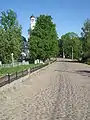 Рядом с храмом находится кладбище и 2 памятника святому благоверному князю Александру Невскому: