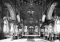Снаружи над входом в здание была помещена копия картины И. К. Макарова, изображающая крушение императорского поезда в Борках, внутри храма арки колонн были расписаны в технике энкаустики, а иконы, помещенные в резной дубовый иконостас, были написаны такими мастерами как Д. В. Трунов, А. И. Шарлемань, В. А. Бобров.