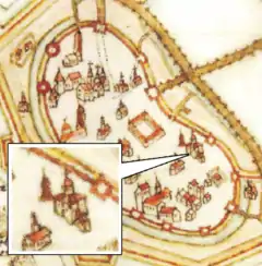 Перестроенный в XV веке Борисоглебский собор изображён на иконе «Видение пономаря Тарасия» конца XVI века, украшенный громадной фреской-иконой и увенчанный двумя главами. Одна из них (маленькая) символически указывает на существование придела Андрея Стратилата. Достаточно чётко можно увидеть придел Андрея Стратилата на шведском плане 1611 года, где он показан с юга у одноглавого основного объёма.