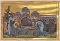 Обретение мощей Луки Евангелиста в храме Апостолов (миниатюра из Минология Василия II, 979—989 годы)